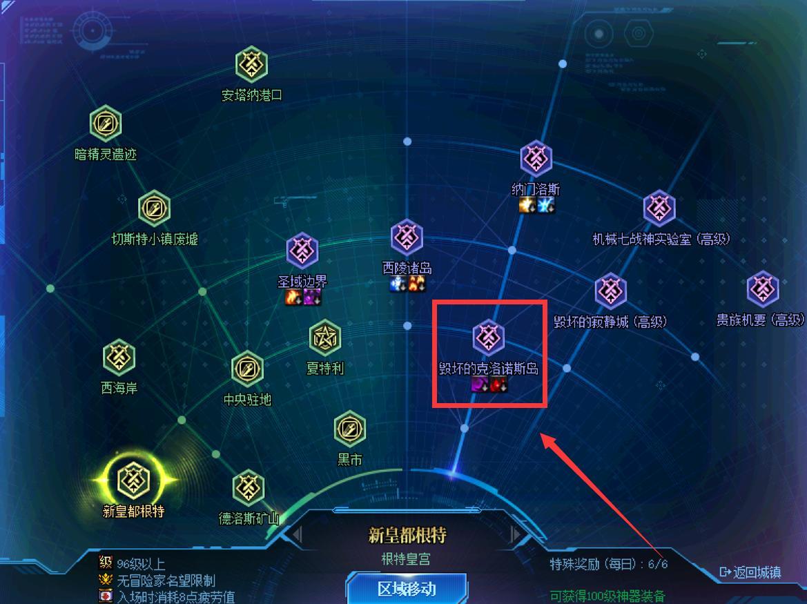 2、点击控制板选择传送到毁坏的克洛诺斯岛。