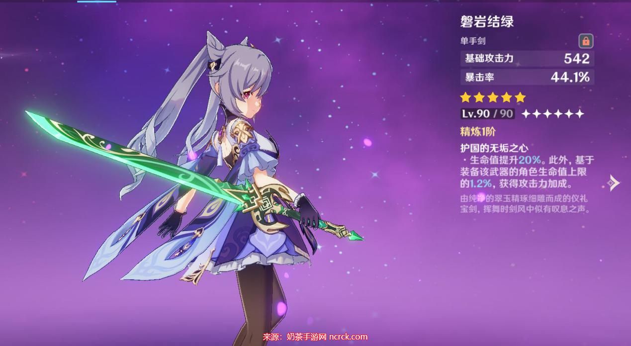2、磐岩结绿:该武器提供暴击率加成,暴击率和被动的攻击力提升等属性对于刻晴来说非常不错,与她的技能契合度较高。