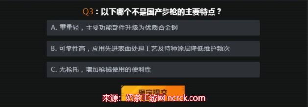选:A. 国产20系枪族;B. 国产95系枪族;C. 国产QBZ枪族确定提交