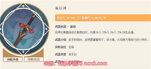 西风剑:充能武器,提供高额元素充能效率,保证大招循环。