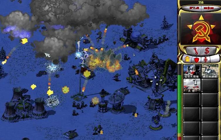 1、当选择苏军阵营时,首先将兵营和复制中心建造出来,并且使用围墙将兵营围起来制造小兵,这样在复制中心造兵就不会扣钱了。