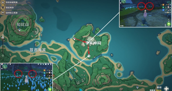 6、千来神祠,这里采集起来比较快,但是只有五个。