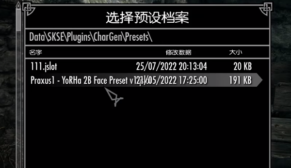 7、最后回到游戏,再次点击“预设”,这里就能直接选择导入的预设了。