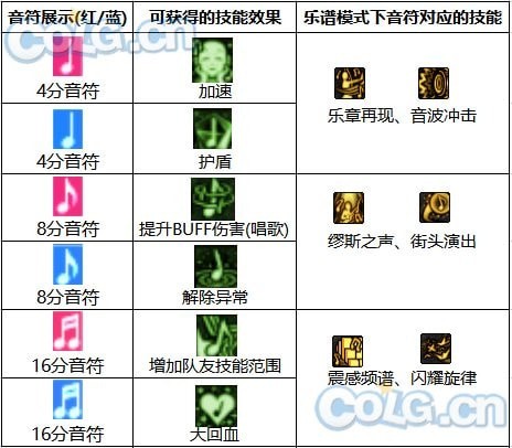 ps:在释放乐谱技能时角色的部分技能会变成音符形式,具体如下表: