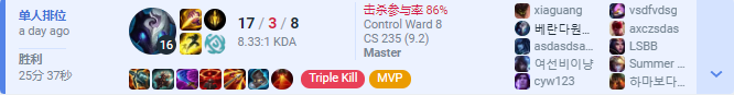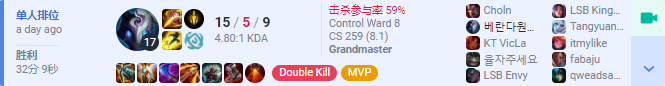 这是来自韩服大师分段的几局排位赛,DRX战队的Pyosik选手在韩服的高分段频繁的使用巨九千珏,并且表现非常的突出,场均人头都在10以上。并且收获MVP如同家常便饭,接下来,小凡将以职业选手的玩法为例,给大家详细解读如何在高分段玩明白巨九千珏。