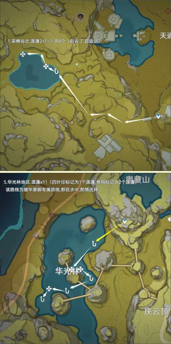 该路线推荐玩家:缺少莲蓬的玩家,由于分布过散,推荐联机获取