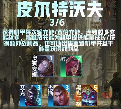 玩家们只需要前期阵容上奥莉安娜、崔丝塔娜、提莫、蔚、杰斯来组成3皮尔特沃夫+2枪手+1法师+1格斗家+2约德尔人+1战略家+1双重施法者,这样就会大概率提升皮城羁绊的出现概率了。