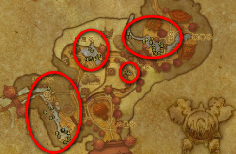 1、下图是奥格瑞玛老滑头鱼的刷新位置,可以看到都是能钓鱼的湖,如下图所示: