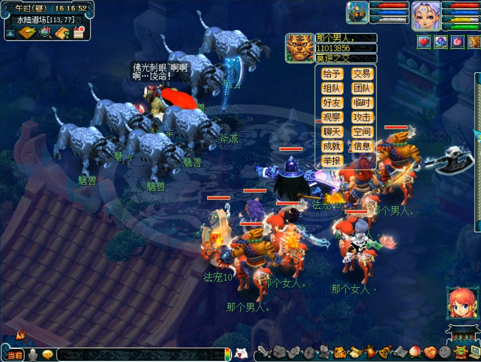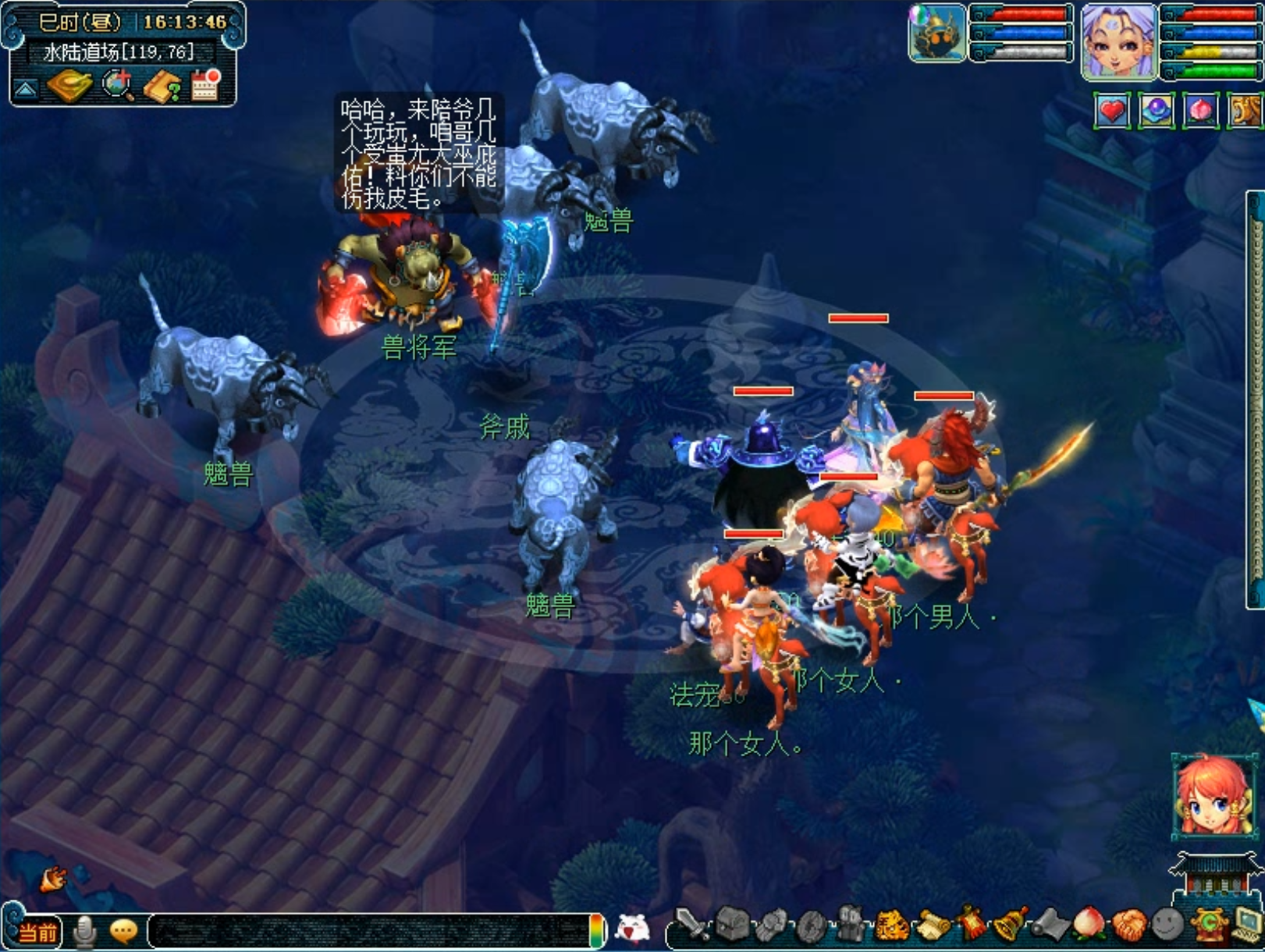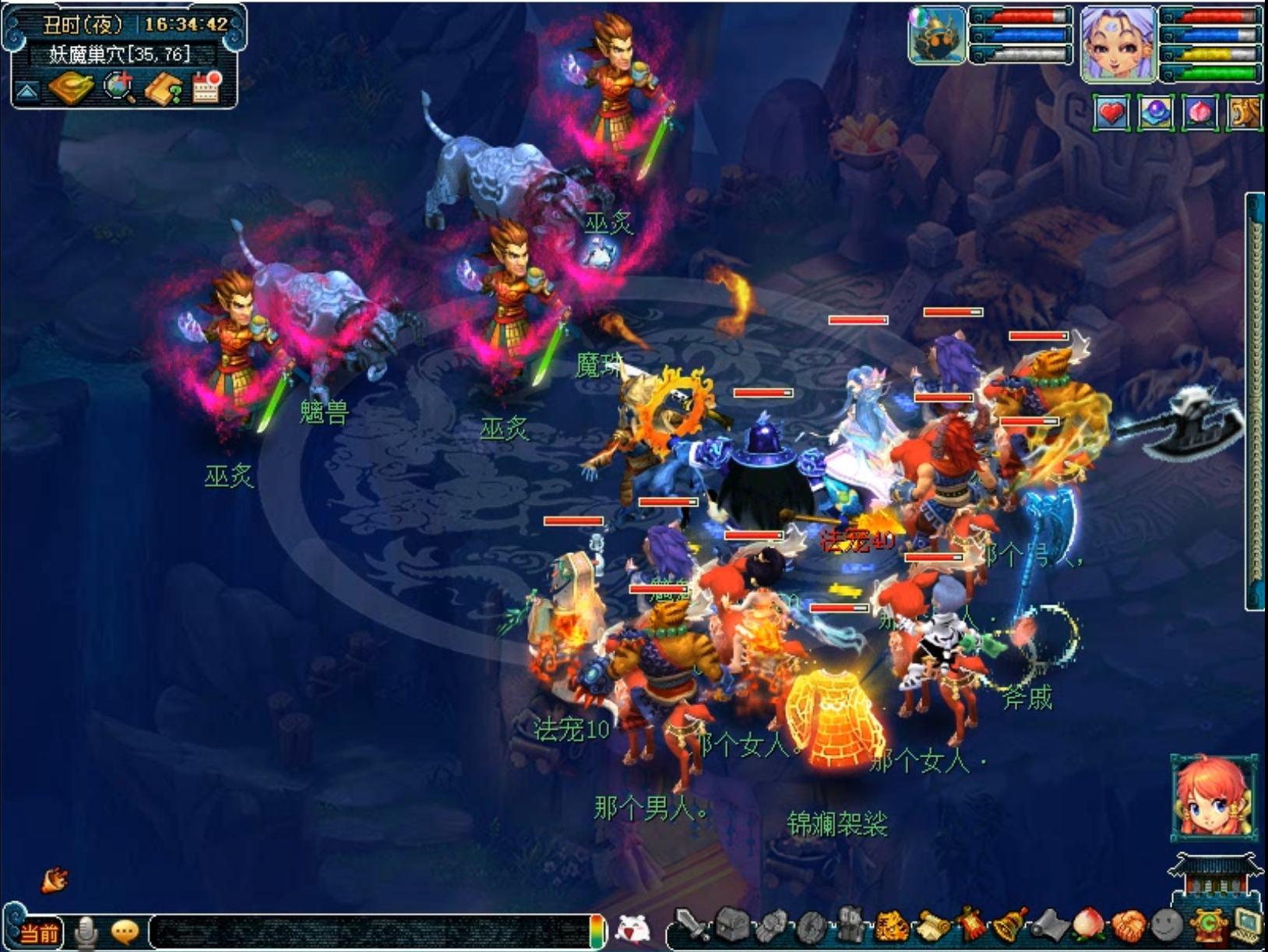 6.切入2个BOSS战斗、魑魅魍魉、这两个怪物皮糙肉厚,耗时较长。【如果非要说有什么技巧,可以优先切几个蓝色的法宝NPC,打败后,就会转化为我们的队友,帮助战斗】