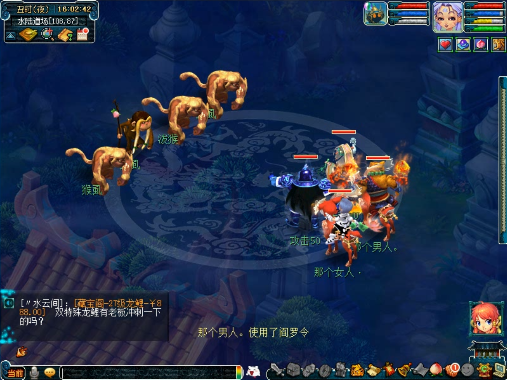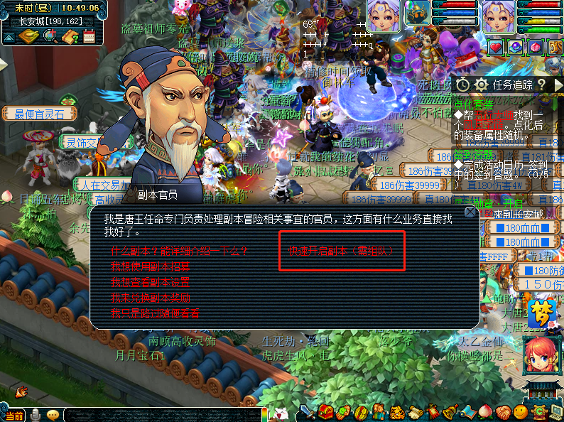 1.首先5人组好队后,在长安副本官员处、点击快速开启副本、选择水陆大会即可、每人扣除5万左右金钱,即可立即进入。【如果中途比如掉线、或者切出场景,可通过化生寺疥癞和尚(32,15),再次进入场景。】