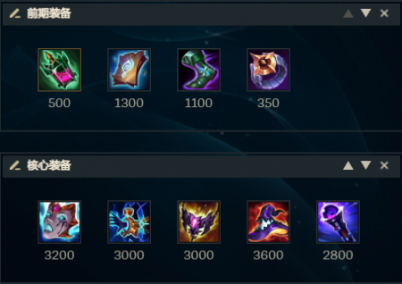 小丑Q技能触发猛然冲击提升伤害,眼球收集器则是提升击杀后的收益,想要更稳妥一点可以换成幽灵魄罗提升防GANK能力,猎人则是小丑大招刷新的越快,就越容易玩弄对手。法力流系带则是提供蓝量续航,超然进一步减少CD。
