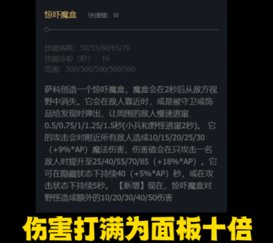 上单小丑学W放盒子即可,小丑W的盒子面板伤害虽然看上去不高,盒子的每次攻击只有10/25的伤害,但其实一个盒子伤害打满,是可以打出十下的,也就意味着一个盒子的伤害上限是100/250,这在是非常恐怖的。只要在线上提前布下盒子勾引对手,小兵没上线的情况下,引得对手不断吃盒子,对手是拼不过小丑的。同时如果对手理智不上前换血,盒子也可以拿来辅助清线,不过要注意留身后盒子防止对手追击。
