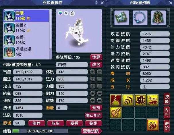 法宠方面,配置了5技能须弥画魂,吃了20个速度元宵。329速度+聚财5速度+坐骑装饰28速度=362速度,虽然缺一本高级敏捷,但速度属性能弥补回来了。