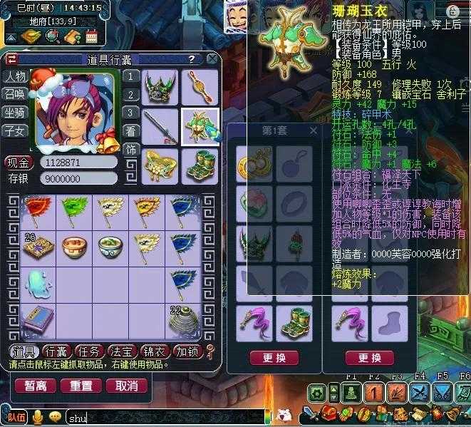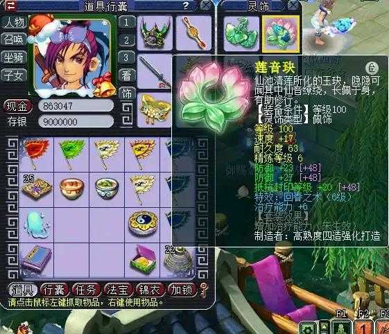 灵饰套装本来打的四级健步如飞,可是转了化生寺想奶量多,就把之前退游的朋友6级回春给买了下来了,所以前排就没有打钟灵石。