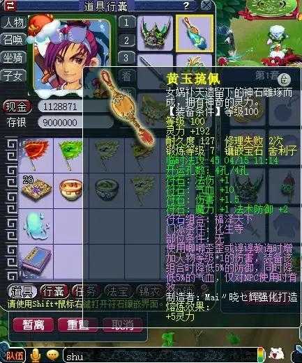 武器是之前还没把百套卖出去的时候留下来的,想着准备升129级,也没必要卖了换垃圾武器,飞升后再换大光武器就好了。武器之前买的5段2400R,自己敲了十段宝石上去,不知道卖的时候会不会亏得妈都不认识,武器法伤146.25。