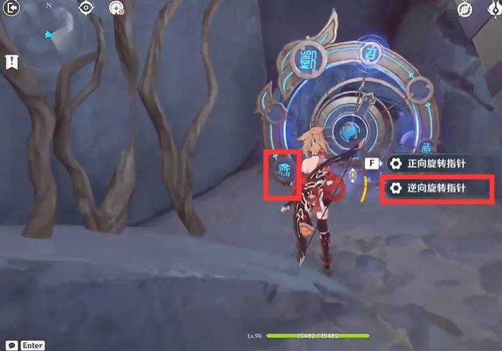 14、然后我们去矿洞里,点击逆向旋转指针,让指针指向左下角。