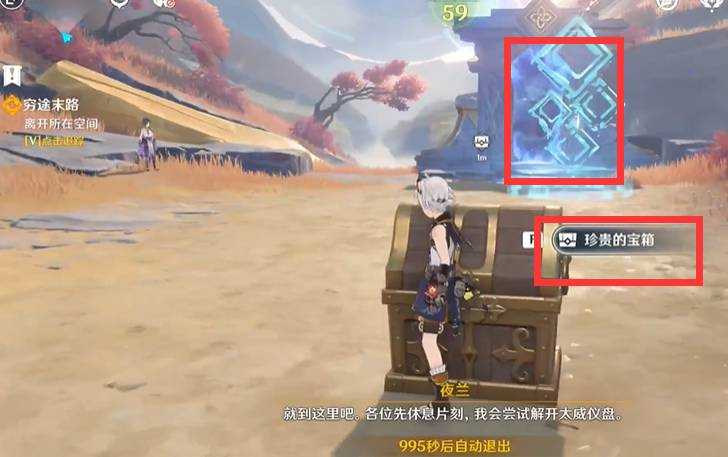 19、对话结束后,我们把箱子拾取上,从蓝色的门离开,然后任务和秘境就都完成了。