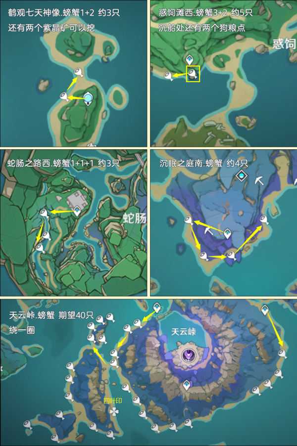 有着1+1+1+1=4个螃蟹,需要按照路线来采集。