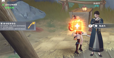 2.与其对话接取到【古代生物调查、水生环境调查、层岩菌类调查】,完成后就可以获得举荐信;