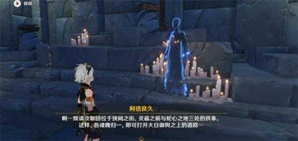 3:然后我们走到密道的尽头,和npc进行对话,获得线索之后,去现狭间之街,灵庙之前还有蛇心之地三个地方获得供奉;