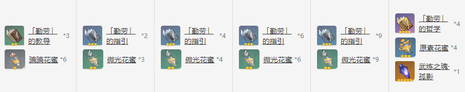 4,5级天赋突破:繁荣的指引*6 + 微光花蜜*6