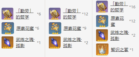 9,10级天赋突破:繁荣的哲学*16 + 原素花蜜*12 + 北风之尾*2 + 智识之冕*1