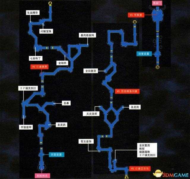 每个门都有大量最终装备,不要忘了拿。中间会遇到中BOSS,注意防御即死、混乱等状态;如果陷入困境的话,此战允许逃跑,退出来重新调整再继续也可以。继续前进到回复装置,把给别的队伍的回路卸下,调整好本队的装备回路,存档之后继续前进,镜头会切回幻影城入口,继续选择队伍。