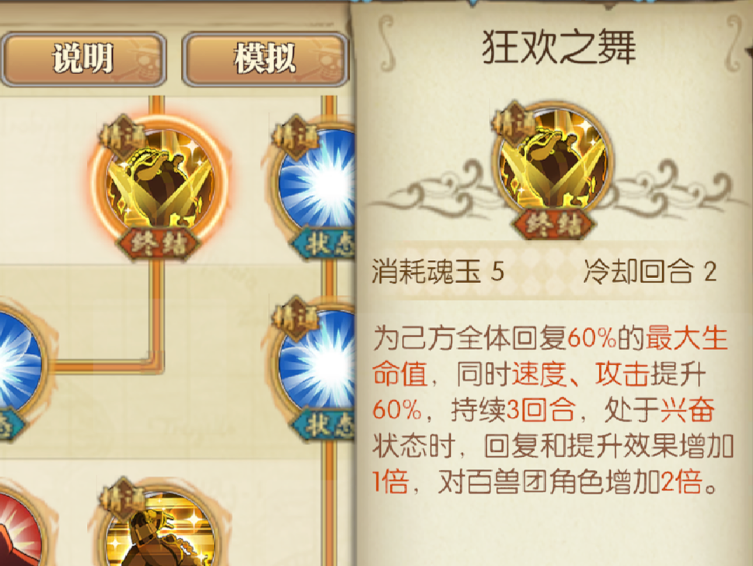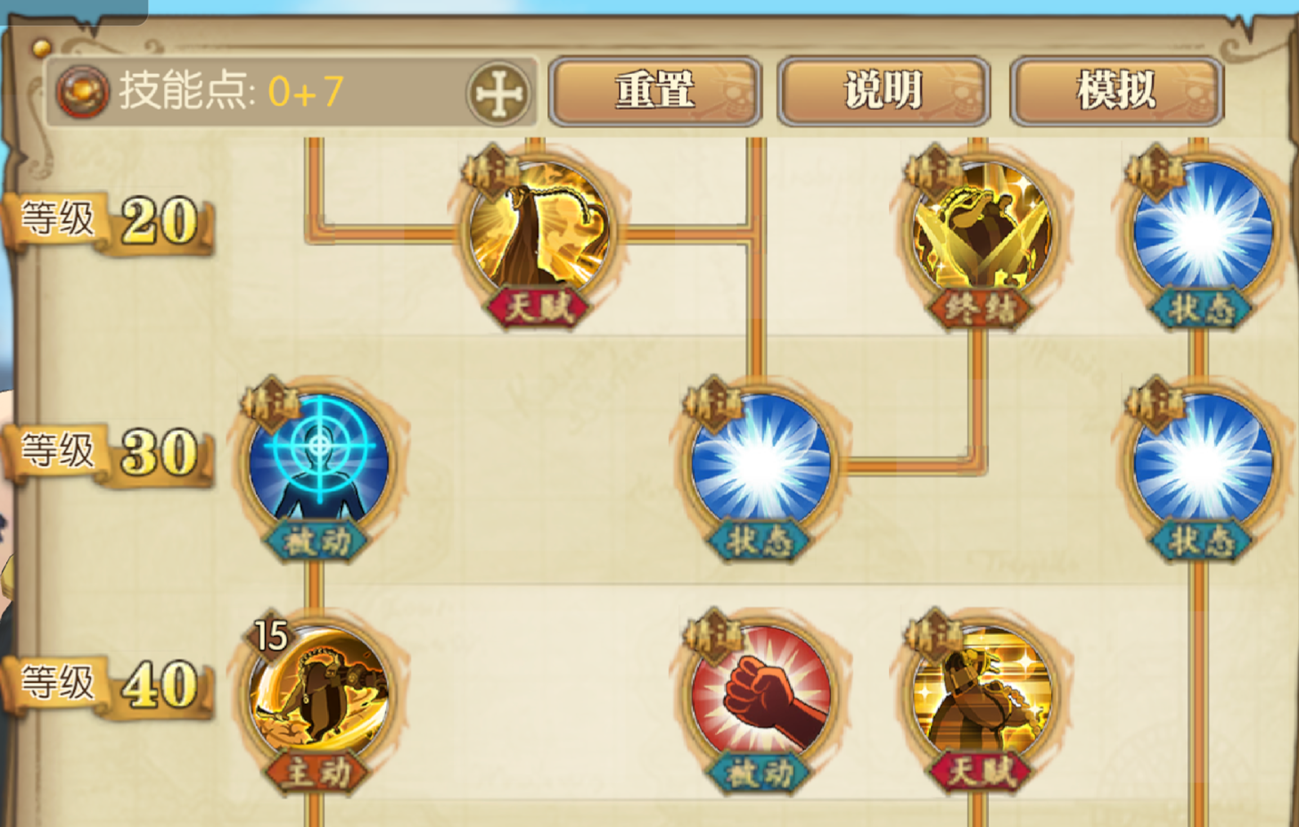 20~40级:终结技【狂欢之舞】点满,其他的被动、天赋、状态点满。40级的那个小能点15级备用即可,它的状态是能提供必中效果。