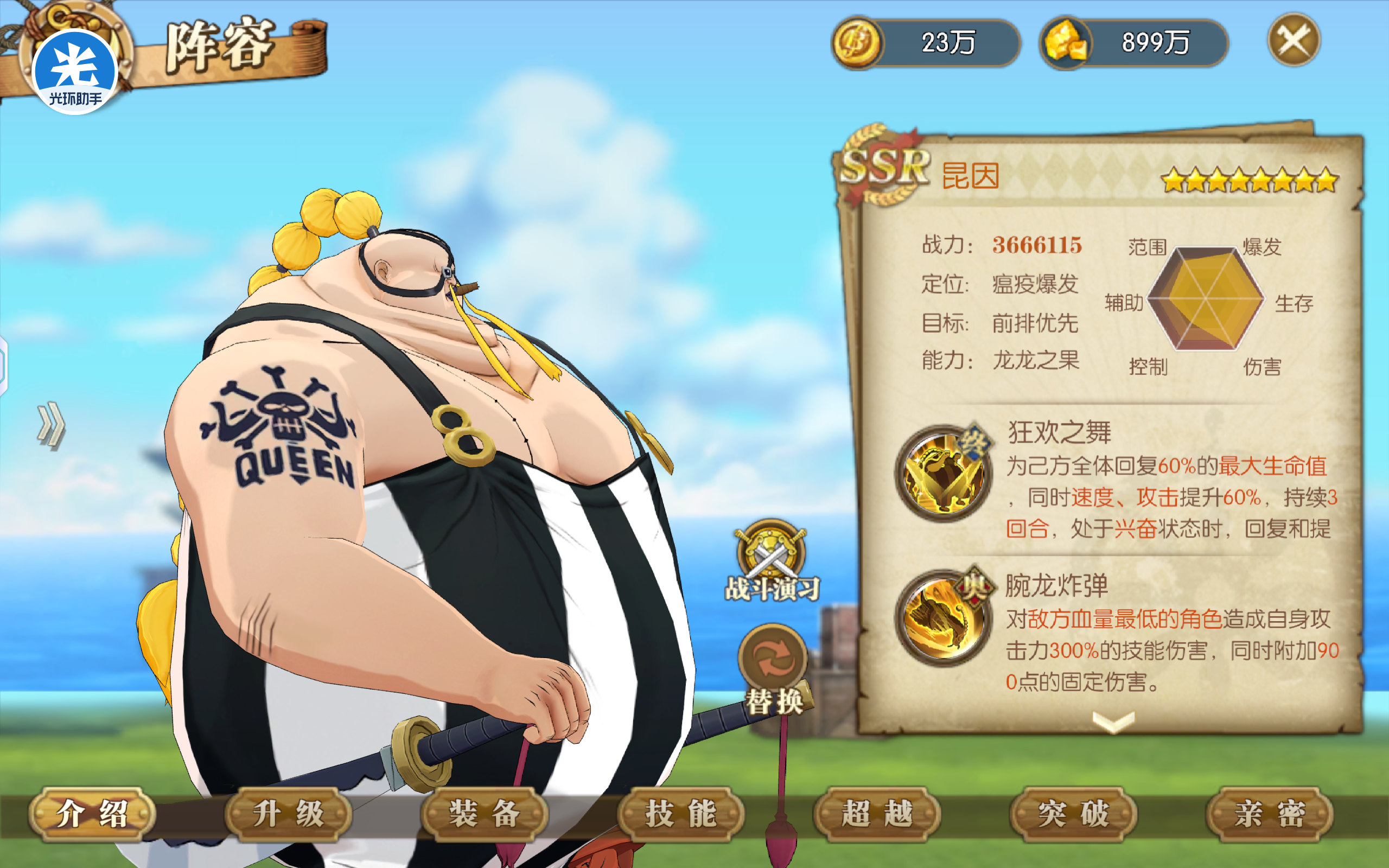 奎因这边是新的定位,叫啥瘟疫爆发,其实就是攻击辅助,自身有不错的输出,同时提供一些团辅能力,且对凯多团有更高的挂件收益。优先打前排,奥义会优先攻击低血量目标。