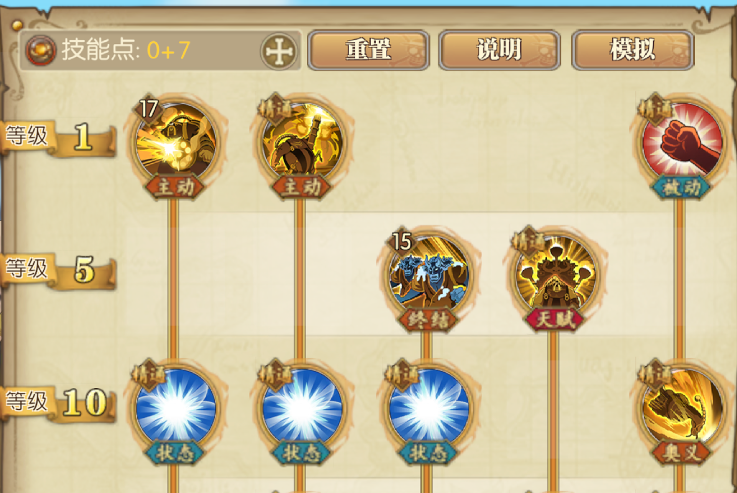 我这里的尽量全部用光技能点的,最终能点出来的技能等级如下。