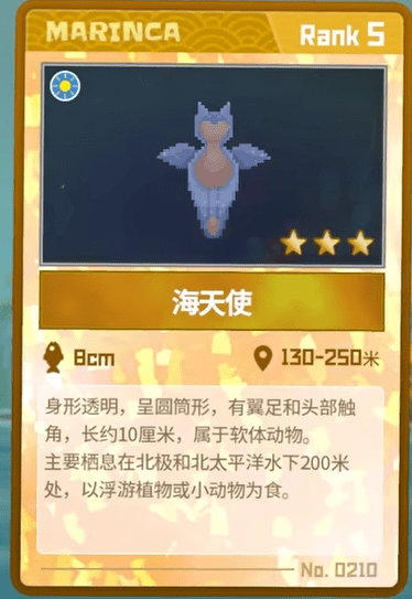 捕捉方法:海天使可以在蓝洞深海200米处发现,使用网兜就可以抓捕到了。