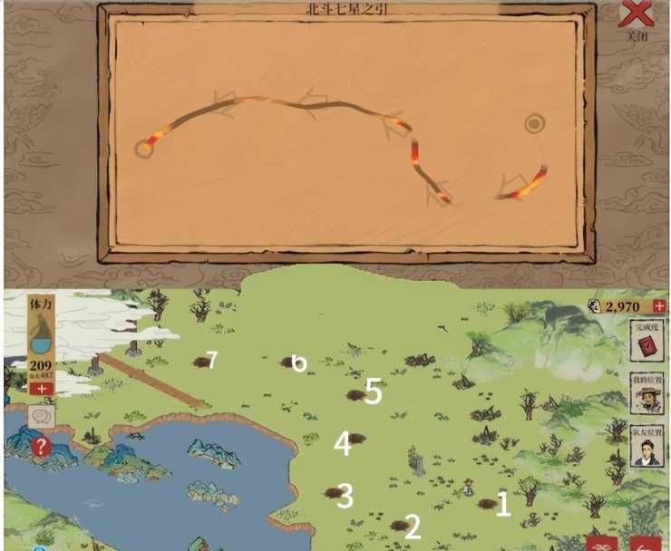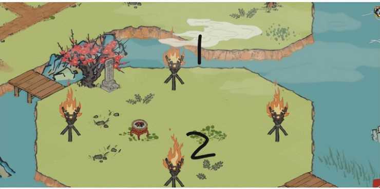 小五点亮火把后关联的火把亮起的位置,就是老默需要点的位置