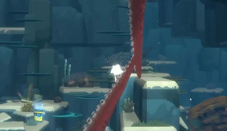 5、每次攻击一枪鱿鱼就会喷墨将我们弹飞,再游回来继续攻击即可,重复几次就能击杀他。