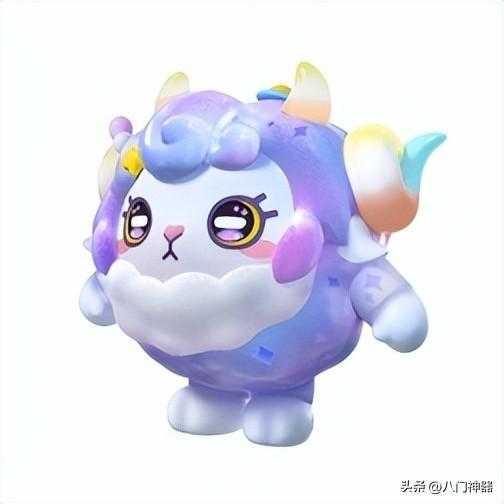 星云咩咩有着蓬松如云的毛发,清透而绚烂的蓝紫色如同宇宙里细碎闪烁的星光。渐变色的弯角如糖果一般晶莹可爱,每当她奔跑起来,身边的星云就会托着梦境一同漂浮,又随着毛发的飘散而飞向远方。因为害怕毛毛把周围淹没,她总是睁着水汪汪的大眼睛强打精神,心里却想着,“什么时候,才能睡个好觉呢?”