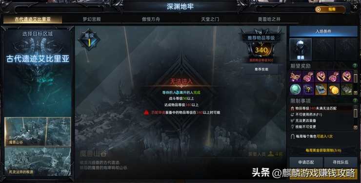 需要注意的是混沌的第一个本装备到了250就可以进入了,而天灾第一个却要求装等302,所以必须要在混沌里混齐了装备才可以去混天灾。