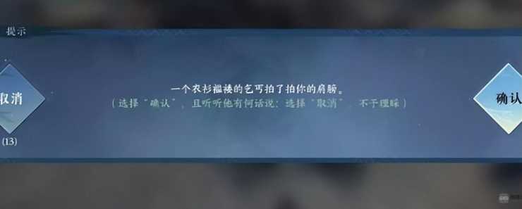 3)然后看到乞丐过来拍你的肩膀(要是一直触发不了的话那么我们就去继续乞讨),人家问我们要啥就给啥,然后就可以解锁进去任务了,按照流程做就可以了。