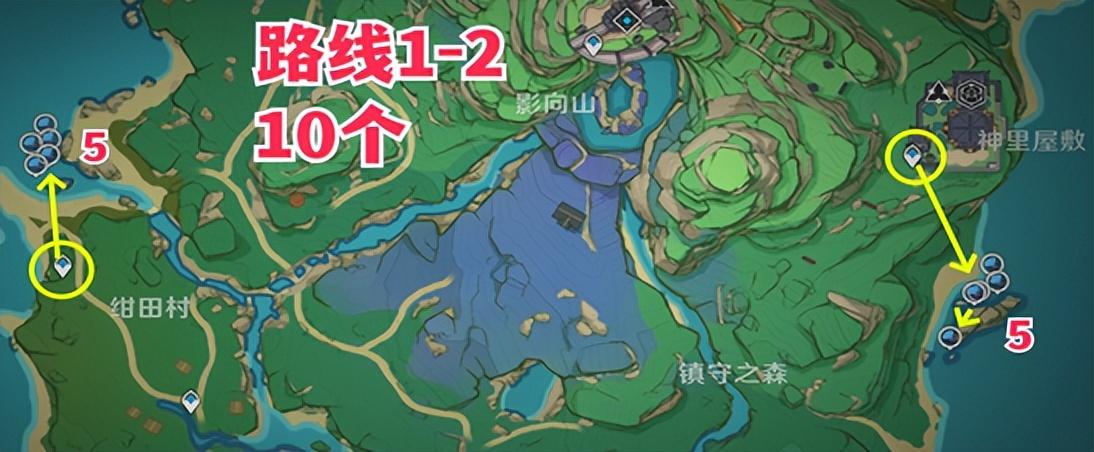 注意事项:路线1-1的几个海灵芝在地下,需要进行任务【神樱大祓】 ,拿到留念镜打开岛屿的屏障才能进去。