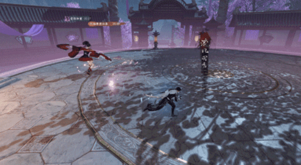 红袖向一个位置跳去,随后释放一段踢击和回旋踢,对周围玩家造成大量伤害,需要注意站位,及时远离。