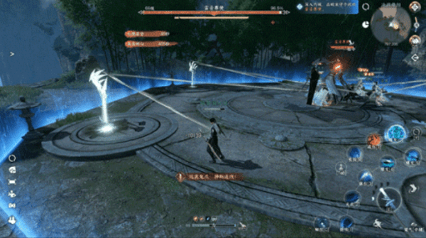 雷音的扇形攻击技能【一笑人间掌】,持续对前方打出音波后,最后一击还会在场地的大量位置生成【八卦】。【八卦】在短暂时间后便会引爆,对站在上面的玩家造成巨额伤害。