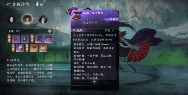 击败红袖尊使后,有概率掉落独珍装备【红袖·惊鸿舞鞋】,该舞鞋由雷音所赠。穿戴【红袖·惊鸿舞鞋】后,释放燕回风后可提高移速。