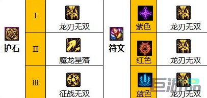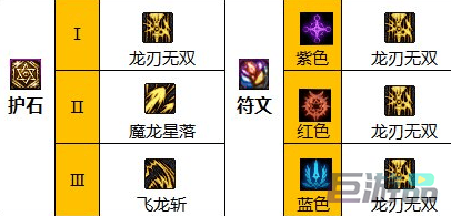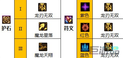符文都是紫蓝红配色,全属性加持推荐龙刃无双。