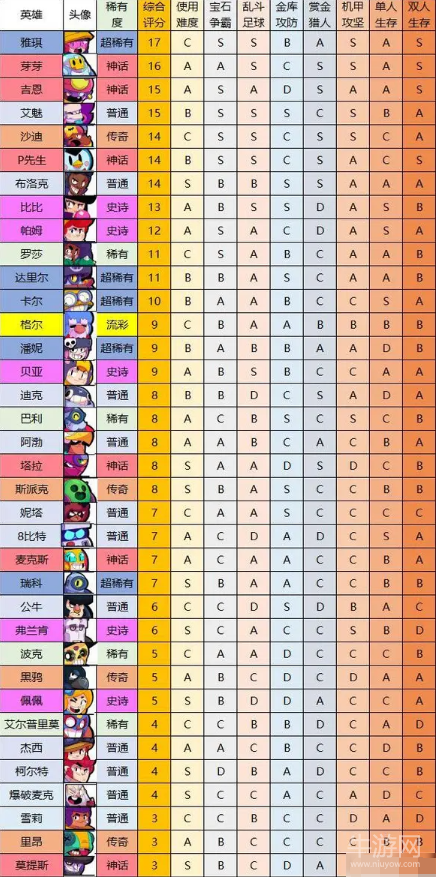 荒野乱斗全英雄排名