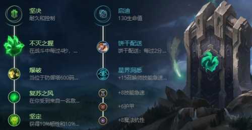 2、出装思路:狗头的神话选择三项,可以提升狗头的技能冷却缩减和攻速有利于狗头的对线,后期堆肉就行了,振奋可以提升狗头的被动吸血效果一定要出的。