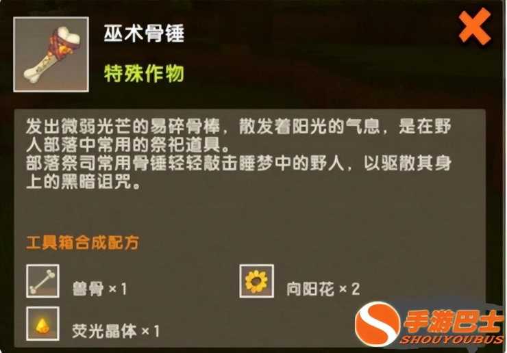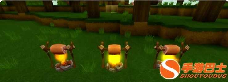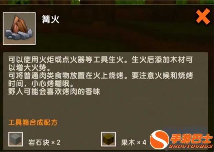 1、使用2个岩石块和4个果木,合成一个篝火。