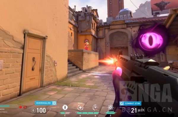 先来看看蕾娜的Q和E技能,这两个技能是共享一共有4个灵魂球的充能插槽。Q技能可以回满血,而且包括最多50点的护甲包,它是可以过量治疗的。E技能在使用后则是无法进入射击状态。