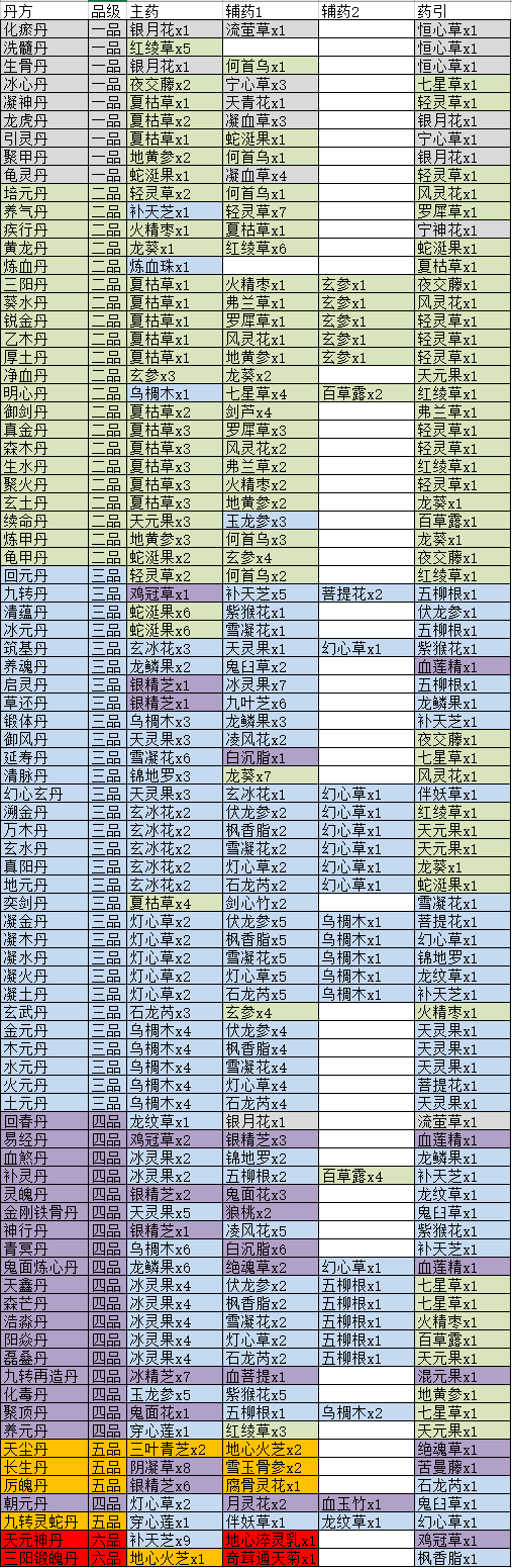觅长生丹方大全表2023-所有丹药配方一览