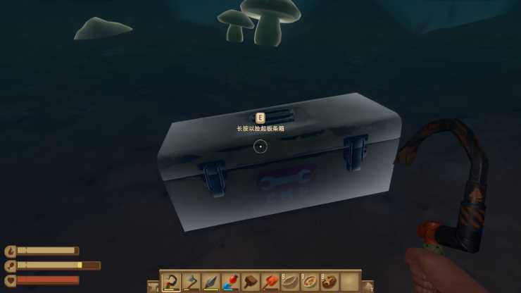 3、把熊引开后进去打开箱子就可以获得砍刀了。