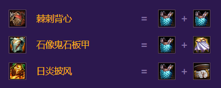 推荐出装:荆棘背心、石像鬼石板甲、日炎披风