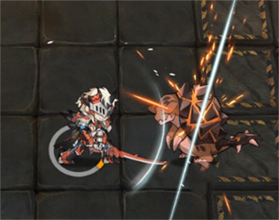 之后是它的技能,它有两个技能,第一个技能在开启时它会停下攻击,之后会进入拔刀状态,这个状态下只要有敌人对他发动攻击它就会反击,反击时还会格挡这次受到的伤害,这个反击攻击是一个aoe攻击,可以对横排的敌人造成一次高频率的斩击。