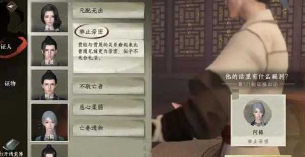 3、开始出示第一个证据“证人,阿梅,举止亲密”